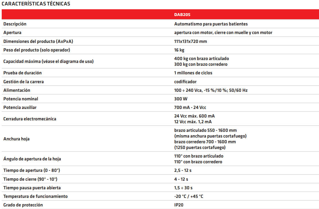 El DAB 205 es un mecanismo pensado en tráfico interno pesado, también es ideal para puertas enchapadas en materiales hospitalarios, este sistema cuenta con una capacidad de hasta 400 Kg.